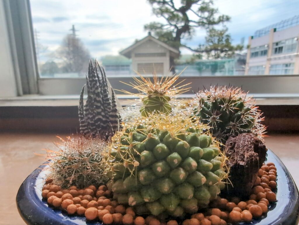 その記念に何か残したいなと思い、伊豆シャボテン公園でサボテンを購入し、校長室に飾っていました。