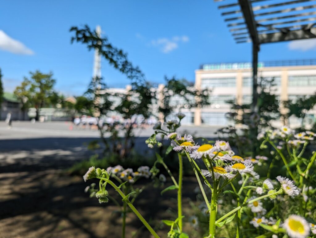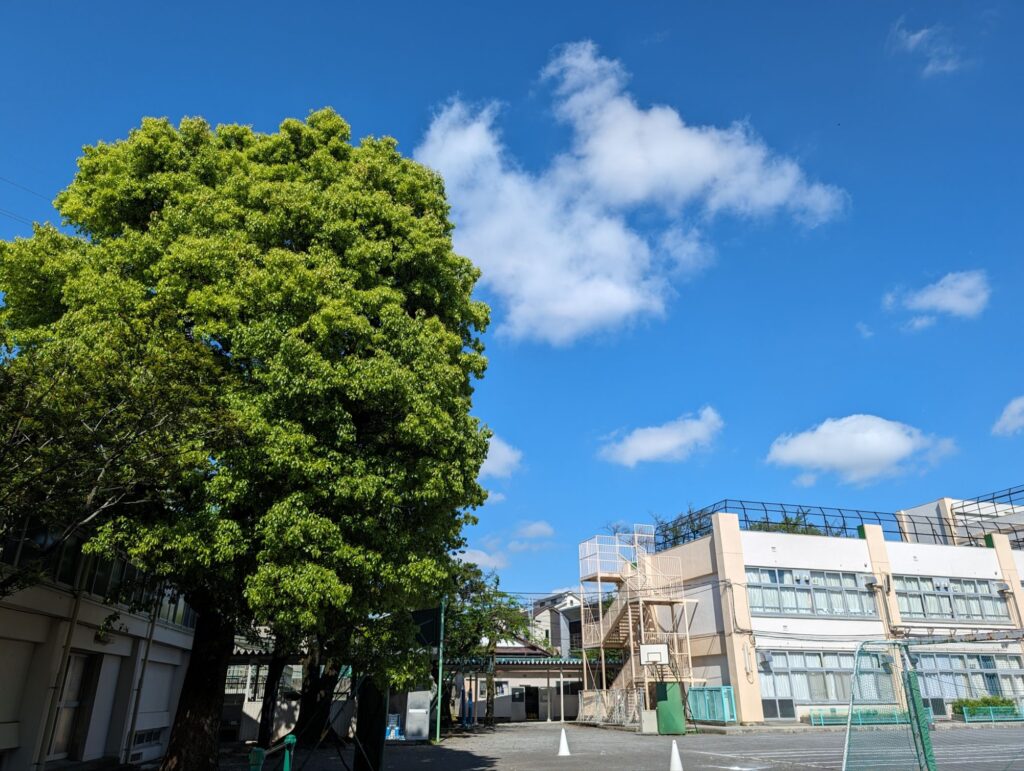 学校全体今朝、通勤途中に、太陽の光がまぶしいなあと感じました。