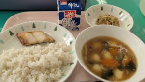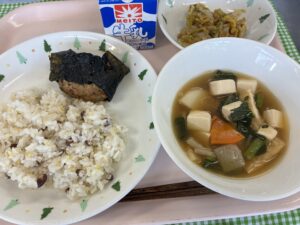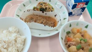 むぎごはん、ほっけの塩焼き、いもだんご汁、野菜のごまみそ和え、牛乳 今日の給食には、北海道の郷土料理として親し… 続きを読む: いもだんご汁 - 1年生のサツマイモ