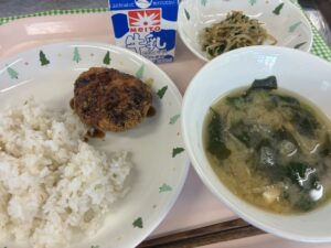 むぎごはん、おから入りメンチカツ、やさいのみそしる、もやしとニラのごま和え、牛乳です。 今日は、香ばしいおから… 続きを読む: いい和食の日 - 山河焼き