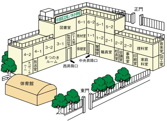 ⇒ 正門からお入りください。
