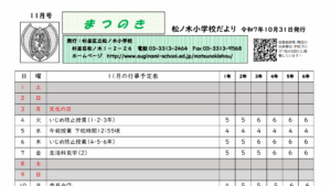 本日は「まつのき食堂」にお邪魔してきました。 地域の方や保護者の皆さんが、子どもたちに無料でカレーライスを提供… 続きを読む: まつのき食堂へ - 献立表(11月号)