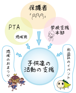 「学校支援本部は 小学生が力を発揮するお手伝いをします」