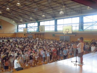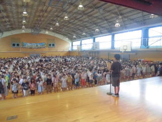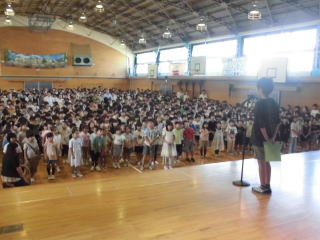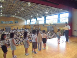 本日、1学期の最終日でした。体育館で終業式をしました。一年生にとっては、はじめての通知表でしたね。明日から待望の夏休み。夏休みならではの楽しい体験をたくさんして、2学期に元気に学校へ戻ってきてください。