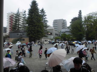ゴールデンウイークが終わり、子供たちが学校に戻ってきました。朝は雨でしたね。早朝合唱クラブの朝練もありました。