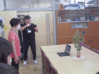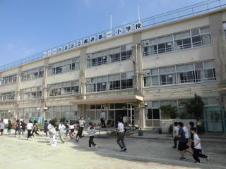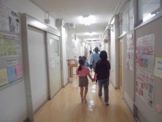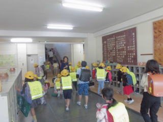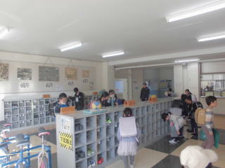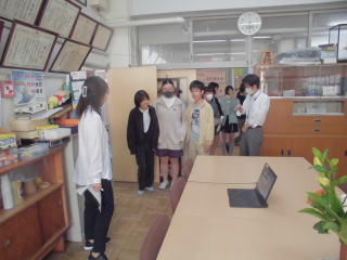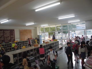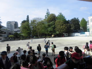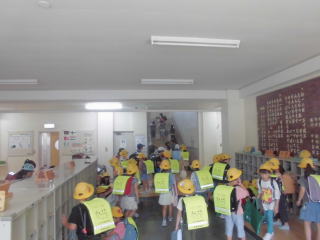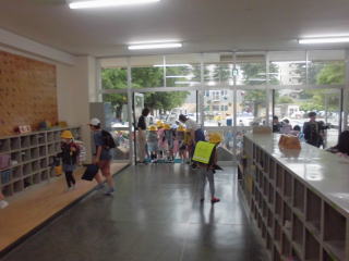 今日はいい天気になりました。3,4時間目、学校探検がありました。2年生の1組、2組の人たちが1年1組、2組の人たちとペアになり、校内を回りました。明日が3,4組になります。
