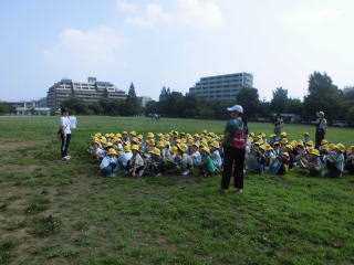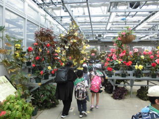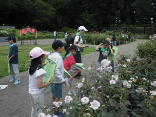 今日は、2年生の生活科見学でした。朝、霧雨が降っていて心配しましたが、予定通りの行程が実施できてよかったです。バラ園のバラがとてもきれいで、たくさんのお客さんが来ていました。バラ園でネイチャービンゴをしました。その後、大温室を見学して、芝生広場でお弁当を食べました。