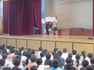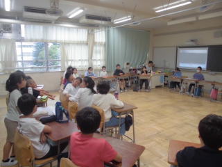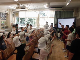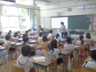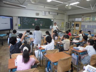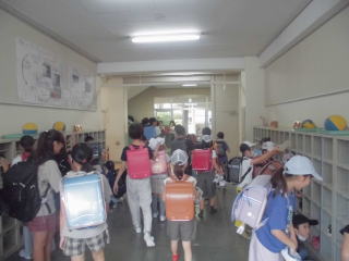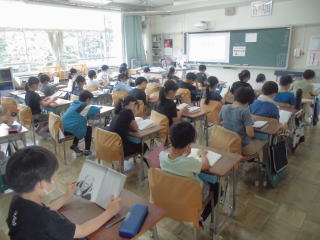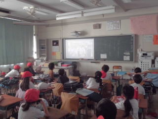 今日は4年生がプラネタリウム、3年生がスペシャルお話会、2年生が町たんけん、といういろいろなことがあった一日でした。かんかん照りではなかったですが、それでも暑さ指数は31を超えてしまったので、校庭での活動は中止としました。