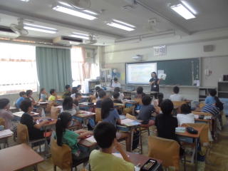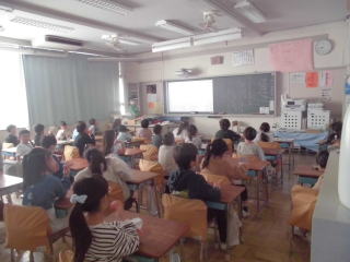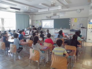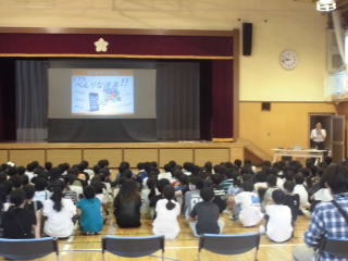 今日は5,6年生がセーフティ教室としてケータイやインターネットの安全について学習を行いました。2年生はまちたんけんに出かけました。プールは3年生が1,2時間目に入りました。