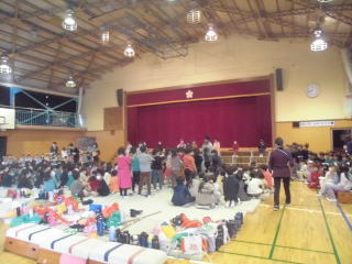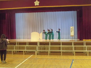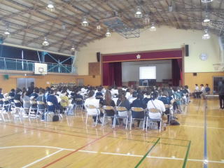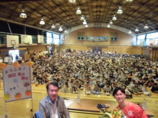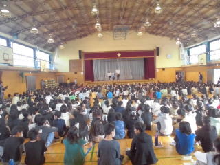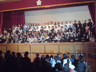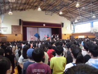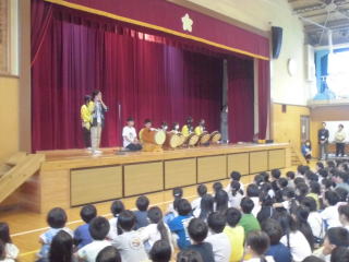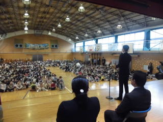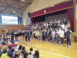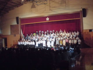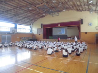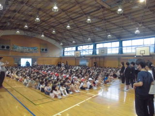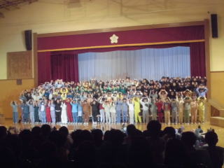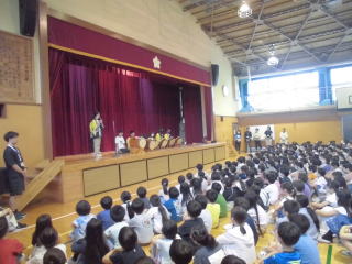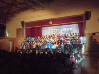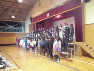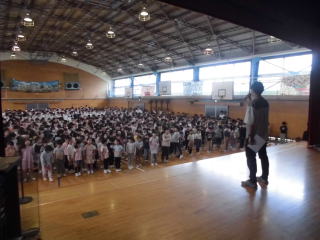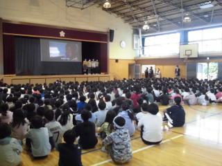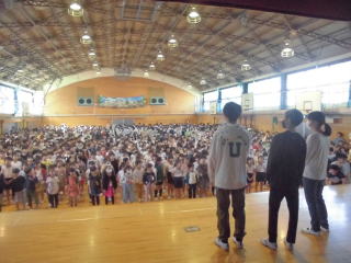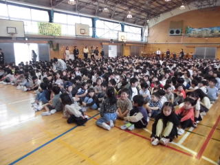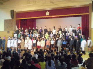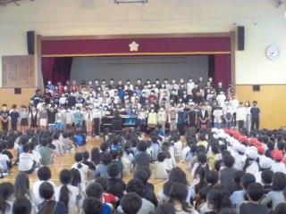 今朝は体育館で全校児童が集まって開校記念集会を行いました。クイズをしました。最後に140周年記念歌「鳥になれたら」を歌って終わりました。