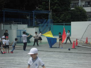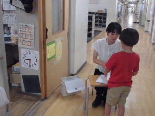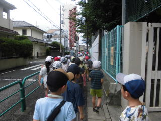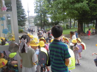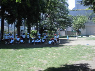 荻窪警察の方、トラック協会の方が協力して、交通安全教室を実施しました。クラスごとにやっていただきました。今日は暑かったので、クラスごとにやっていただいてよかったです。交通安全を意識して生活していきましょう。