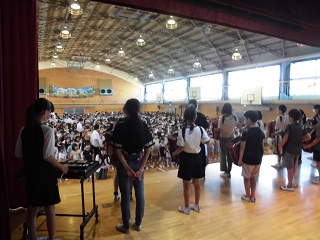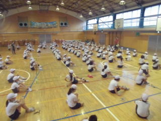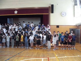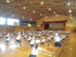 今日も暑かったですね。朝、早朝スポーツは卓球、早朝合唱の練習もありました。朝、1時間目、明日の音楽朝会の練習で6年生が体育館で練習をしました。