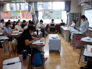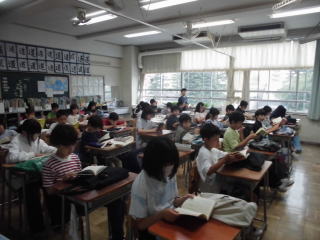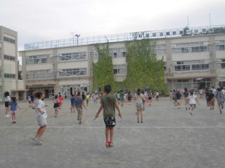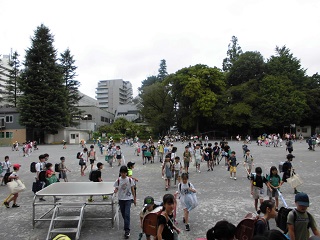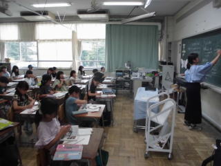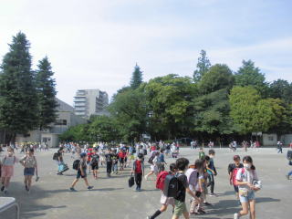 今日は少し暑さがやわらいで、久しぶりに休み時間、外遊びもできました。午後は井荻中・桃一小、四宮小の3校合同研修会でした。井荻中の授業を見学した後、3校の先生方が分科会ごとに情報交換、意見交換をしました。