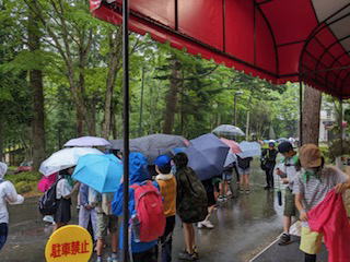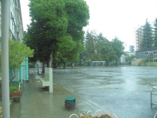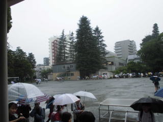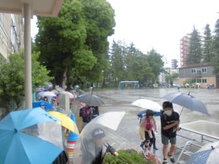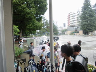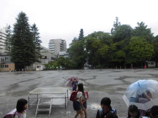 昼休み、暑さ指数が29で「外で遊べます」と放送があって、低学年が出ていったら、いきなり雨が降ってきて「雨が降ってきたので、残念ながら外では遊べません」と放送が入り、「外で遊ばせてください!」「全然大丈夫です!」という子どもたちの訴えに、「いやいやそうはいっても雨が降っているから駄目です」と言っていたら、また晴れて「晴れたので外で遊べます」となりました。