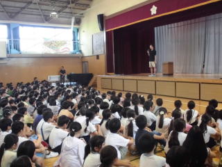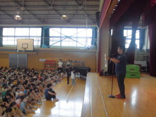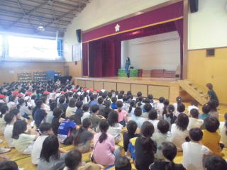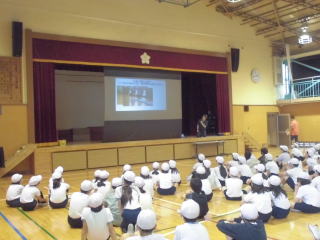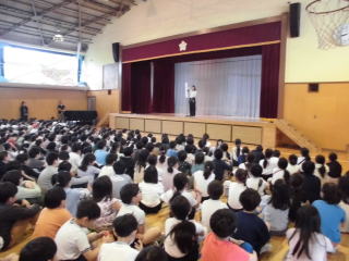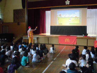新しい1週間の始まりです。久しぶりに全校朝会を校庭で行いました。3年生はそのあと桑の葉を取りに行っていましたね。かいこが元気に育っているようです。1年生はセイフティー教室。マクドナルドからドナルドさんが来て、いろいろと教えてくれました。