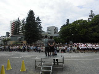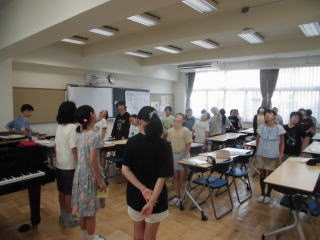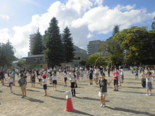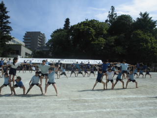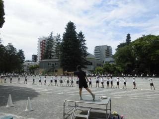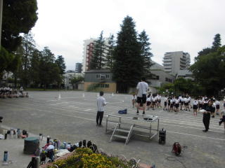 早朝スポーツ、早朝合唱、音楽朝会の練習(7/10)