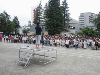 今朝は体育館で集会委員会による集会がありました。午後、6年生は井荻中に見学に行きました。授業の様子やプール、図書室などを見学してきました。一週間が終わりましたね。1学期も残り2週間、学校に来る日もあと10日間です。
