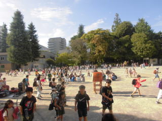 1年生から6年生までそろっての全校朝会。校庭にみんな集まりました。コロナでオンラインでやってい頃と比べると、やはり「あつまり」はいいな、と思います。「シャキッとサインをしっかりやろう」という話をしました。朝クラスを回ったら、みんないい姿勢で挨拶をしていて、うれしかったです。今日はこのあと1年生が交通安全教室を行います。