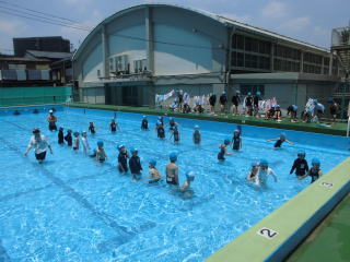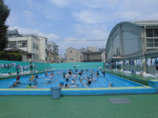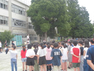 新しい1週間の始まりです。しかし今日も暑い。全校朝会も避難訓練も体育館で行いました。プールはなんとか実施ができました。