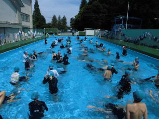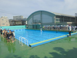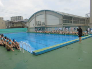 1学期の最後の1週間になりました。全校朝会はTeamsで行いました。今日は涼しくなってプールも少し寒く感じたようです。