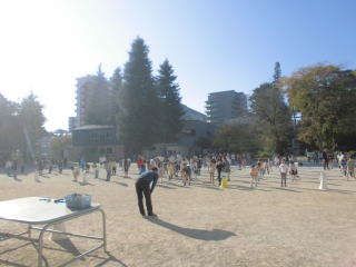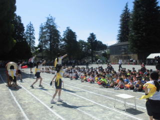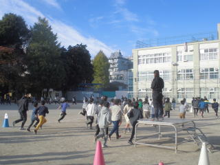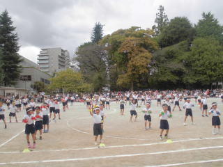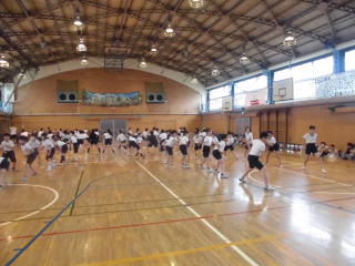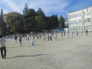 今日の早朝スポーツは校庭がサッカー、体育館がバドミントンでした。今日はたてわり班集会もありました。6年生ががんばってリードしています。