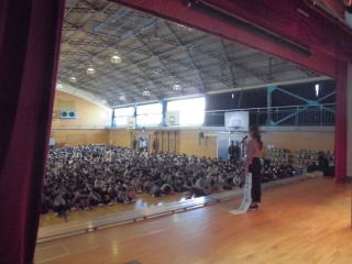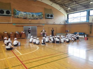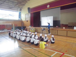 今日はいい天気になりました。からだ力タイムも無事にできました。4年生は水道キャラバン。体育館で、水道の学習を行いました。