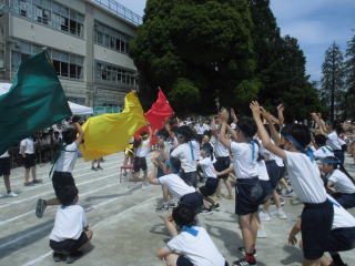3年生の表現は「舞祭り~最高な仲間と夏をよぶ~」扇子をもって、かっこよく踊りました。4年生の表現は「あいのHappy Anniversary!」みんなで桃一小の150周年のお祝いをダンスで表現しました。3年の団体競技「みんなで作ろう!ケーキ運び」もあり、150周年ならではのプログラムになっていましたね。