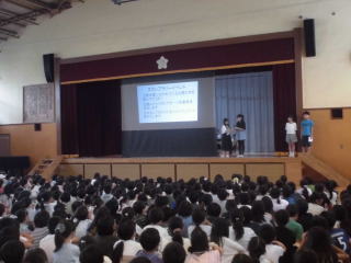 今朝は体育館で「委員会紹介集会」がありました。それぞれの委員会の委員長さんが力強く委員会の紹介をしていました。これからの活動が楽しみです。