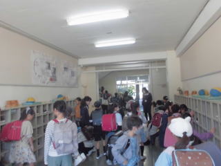 昨日で1学期当初の全部の学年の保護者会が終わりました。お忙しい中ご参加いただいた保護者の皆様、どうもありがとうございました。今日から1年生も在校生と同じようにチャイムが鳴るまで待機線で待ちます。1年生も少しずつ学校に慣れてきていますね。