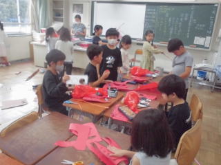 今日は雨になりました。水泳指導も中止です。体育館でシャトルランをしていました。図工室では6年生が工作をしていました。