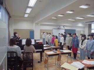 今日から早朝合唱クラブの練習が始まりました。朝、多目的室で火曜日と木曜日に行います。