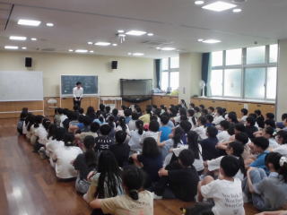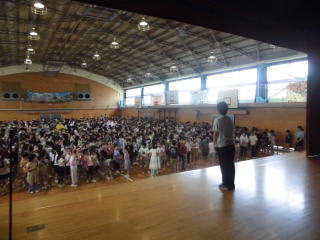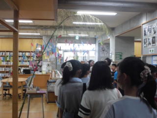 今日は七夕。全校朝会は体育館で行いました。暑いので、暑さ対策をしながらの教育活動です。先生方の研究授業が続いています。