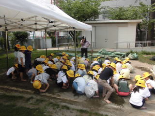 今日、5年生は立川防災館の見学でした。人数が多いので、前半後半に分かれて、昭和記念公園と防災館に行きました。防災館では、消火器の訓練、救急訓練、防災のVR、地震体験をしました。