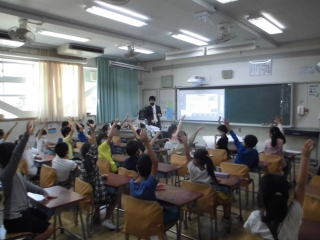 新型コロナウィルスの影響で、全校で集まって集会を行うことができません。オンラインでの朝会や集会が続きますが、子どもたちもだんだんと慣れてきたようです。今日は児童集会。6年生からのお知らせと委員会の紹介です。6年生は総合的な学習の時間に学んだ、途上国に文房具を送る取組「ENPITSU PROJECT」を6年生でも取り組むことにしたそうで、その協力依頼のお知らせでした。委員会紹介は給食の時間に映像で流すことになっています。