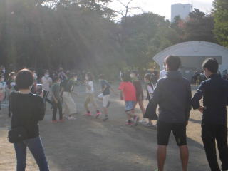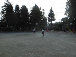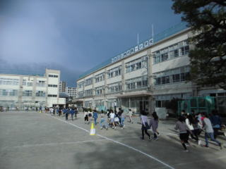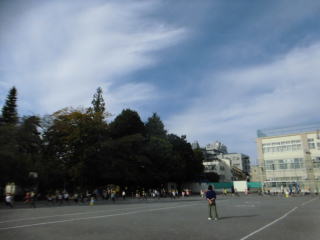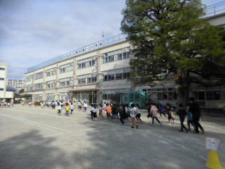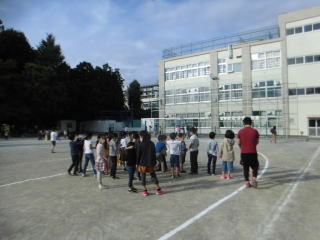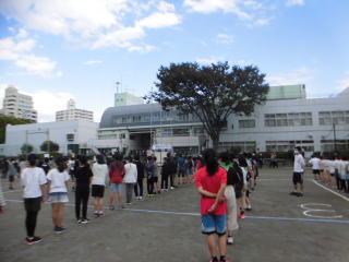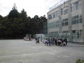 今日の避難訓練は不審者対応訓練でした。放送が入ると、校庭で体育をやっていたクラス、活動していたクラスは校庭の端のほうへ避難しました。
