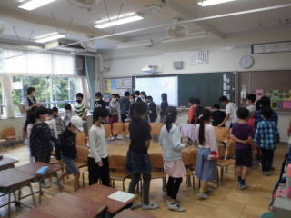 1週間の始まりの日。全校朝会はTeamsを使って、各教室を結んで行っています。今日は個人表彰もありました。最初に挨拶する6年生も、ずいぶん慣れてきた感じがします。
