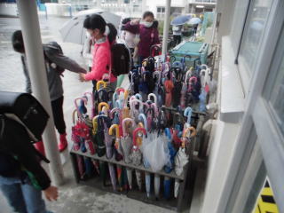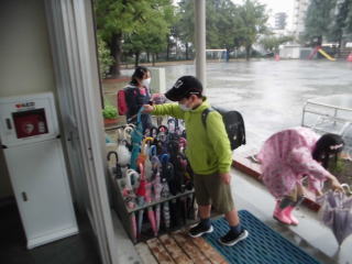 雨の中、子どもたちは元気に登校してきました。傘立て付近がどうしても密になりがちですが、マスク着用、おしゃべるをしない、で乗り切っています。ご家庭におかれましては、毎日の健康カードの記入、どうもありがとうございます。ご協力に感謝します。