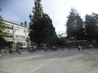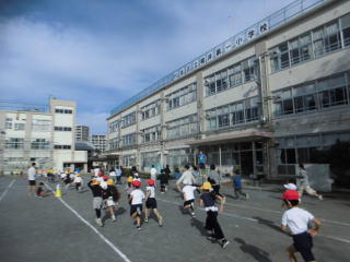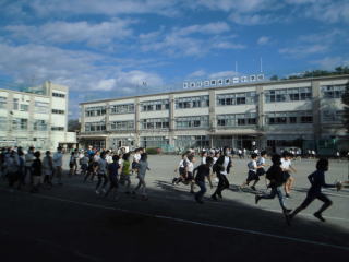 今日の仲よしタイムは3年生と5年生。5分間走です。秋晴れです。走っていて気持ちの良い季節になりましたね。