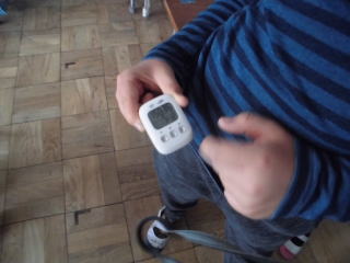 歩数計調査が始まりました。今日の仲よしタイムは3年生と5年生。5分間走ると、だいたい3000歩から4000歩くらいですね。自慢げに歩数計を見せてくれました。