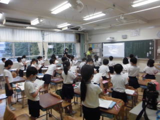 今日は、校内研究の第1回目の研究授業。三密を避けて、体育館で授業を行いました。その後の研究協議会も体育館で行いました。校内研究の一番の目的は、先生方の授業力を上げること。今日の研究授業も、明日からの日々の授業に役立っていけるといいな、と思います。