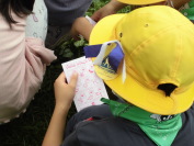 野川公園ではネイチャーゲームをしました。折り紙と同じ色のものを探すゲーム、蜘蛛の巣をみる、鳥の鳴き声を聞く、などの項目が入ったビンゴゲーム、カウボーイゲームと3つのゲームをやりました。