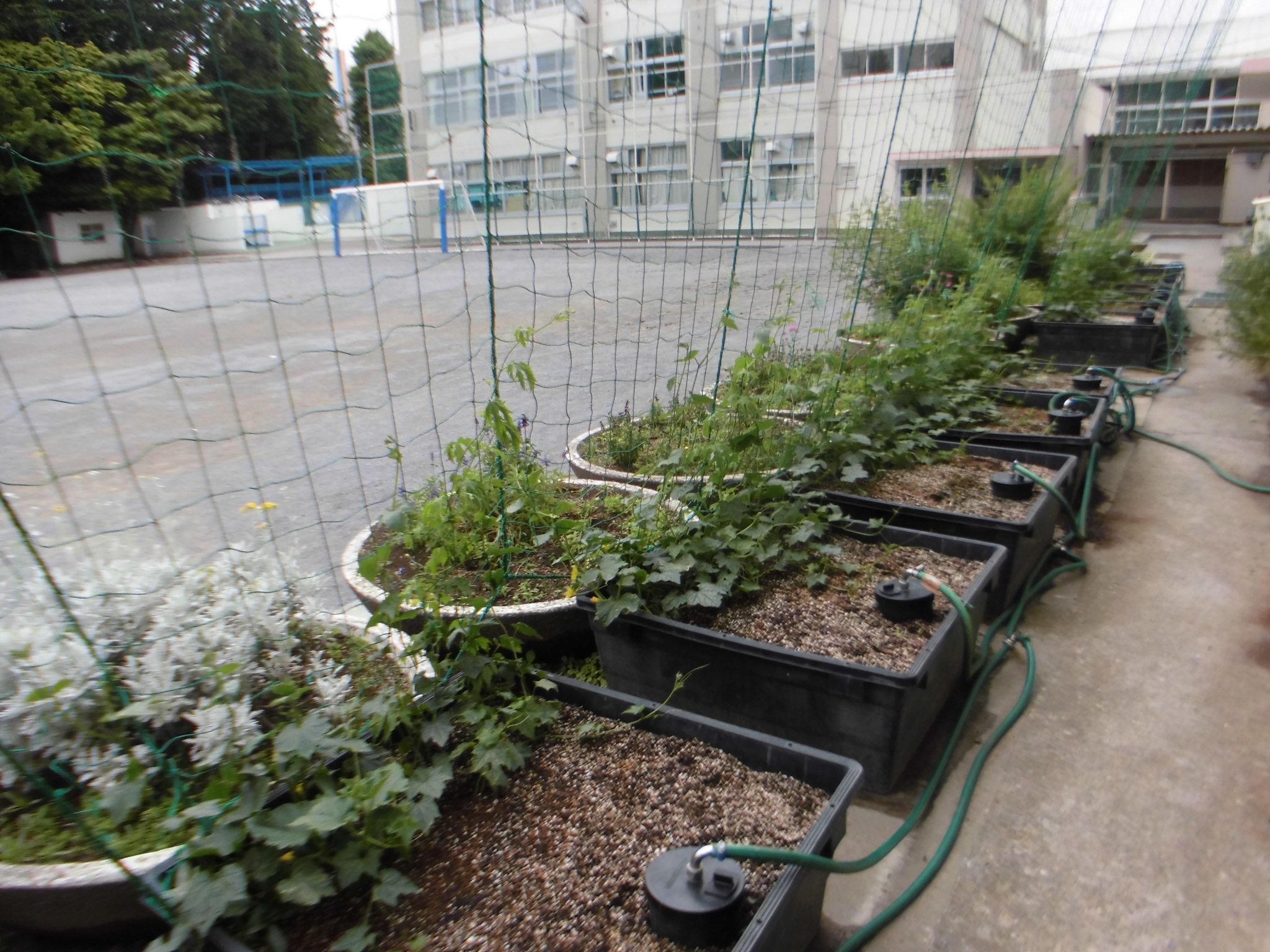 本校で毎年行っている「壁面緑化」ですが、今年度は5月11日に設置が行われました。