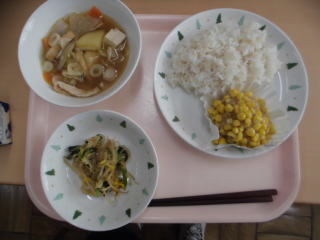 今日は9月9日。1月1日を除いた月の数と日の数が、そろって奇数になっている日を「節句」といい、3月3日は「桃の節句」5月5日は「菖蒲の節句」7月7日は「笹の節句」、そして9月9日は「菊の節句」と呼ばれています。昔、菊は長寿の薬として使われていたことに由来し、長寿や健康を願う日として「重陽の節句」と呼ばれています。この「重陽の節句」にちなんで今日の給食はとうもろこしを菊にみたてた「きっかむし」食用の菊の花びらが入った「こまつなのきっかあえ」が出ました。子どもたちの健康を願いながら食べたいと思います。