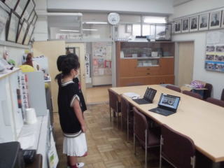 毎週月曜日の全校朝会、全員が集まるわけにはいかないので(密になってしまうので)オンラインの全校朝会を行っています。Teamsを使って、各クラスをつないで行っています。新型コロナウィルスの関係で、しばらくはこの形になりそうです。「9月の桃一小」はこちら