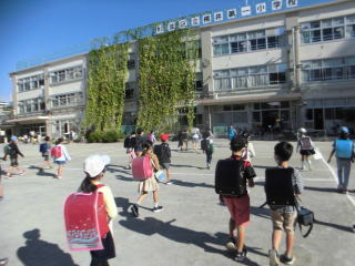 1年生は野川公園に生活科見学に行きました。各クラスごとにバスに乗って、早稲田通り、青梅街道と走って、野川公園へ。野川公園ではネイチャーゲームをやり、お弁当を食べて、「秋をみつけよう」ということでどんぐりを拾い、たくさん体を動かしてきました。感染予防をしながらの活動でしたが、みんな楽しく過ごしました。