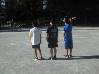 モモリンピックが終わり、仲よしタイムの再開です。今日は2年生と4年生です。ほとんどの人が、時間に間に合うように校庭に出てきていますね。