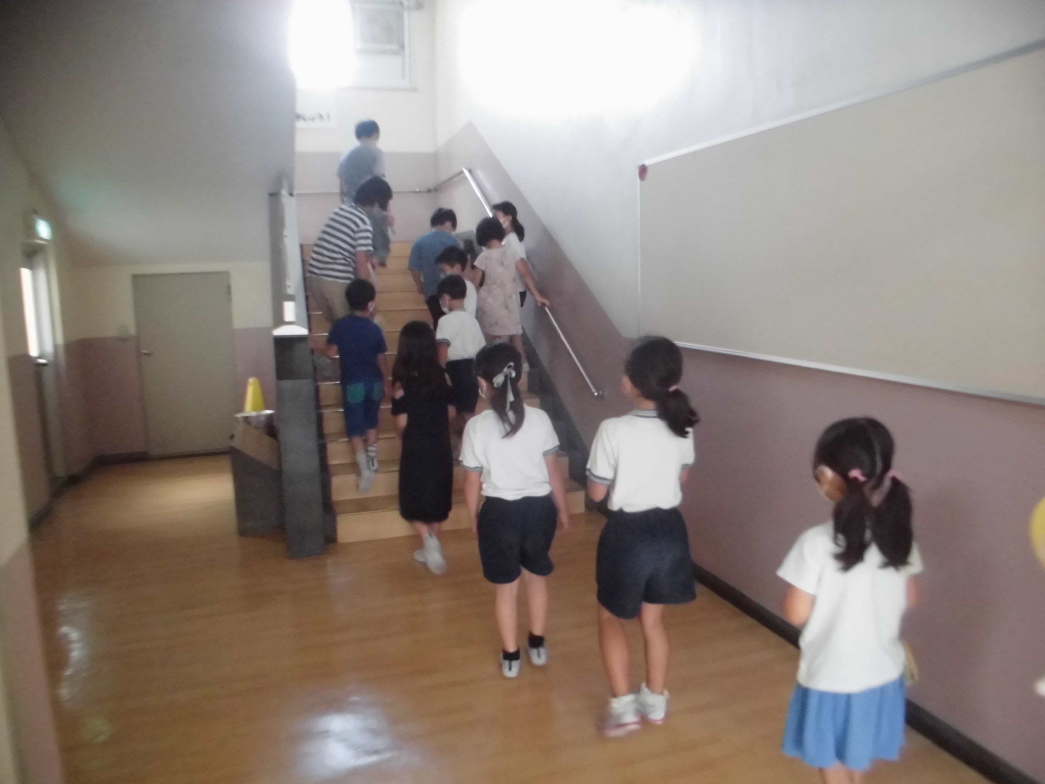 【9/4】引き渡し訓練、防災頭巾をかぶって待機
