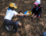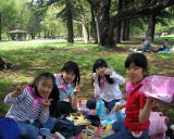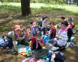 | お弁当を食べた後は、楽しみにしていた「お菓子交換」 とボール遊び、おにごっこなどなど。 おもいっきり遊んで、のどもからからになりました。駅までがんばって歩いて、・・・学校までもがんばって 歩いて、やっと帰って来ました。 次の日、元気に登校してきて、「さすが!パワーのある子どもたちです。」〜疲れが残ったのは大人です。 |