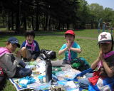 | 集合して、いよいよ待ちに待ったお弁当です。 すごくおなかがすきました。 | |||