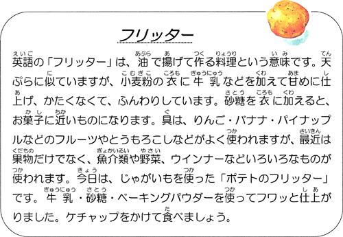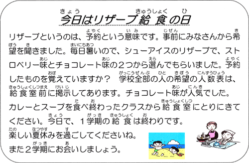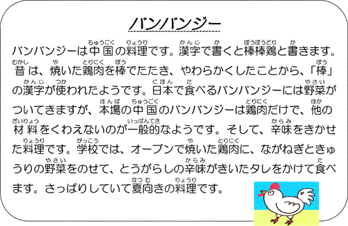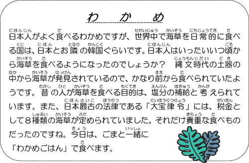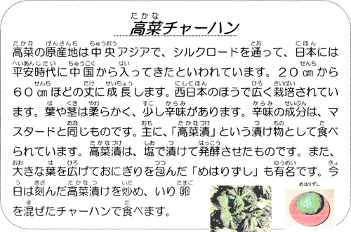| ※「なかよし給食」(他学年交流給食)のため、給食紹介はお休みです。 |
